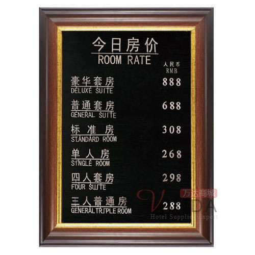 【商品特点】:烫金色边框,雍容华贵,是酒店良好形象的象征。