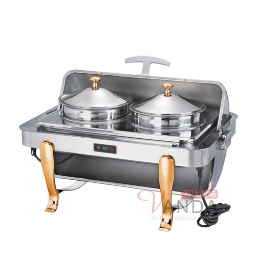 温控镀金全翻盖双头宴会汤炉