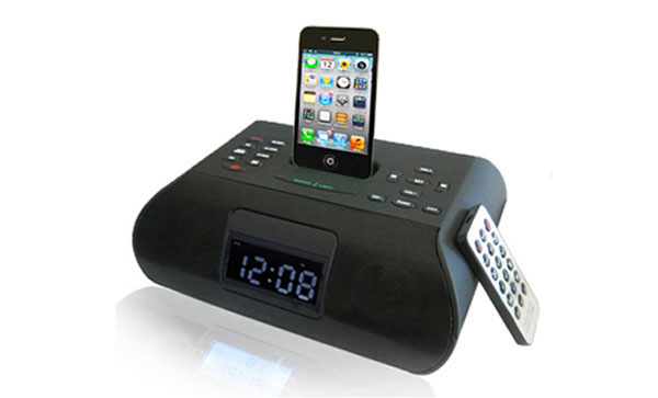 支持ipod/iphone版本3G/iPhone 3GS/iPod Video,双闹钟,收音(FM),功放输出功率:2*5W,2.0立体声喇叭。