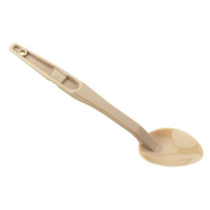 > 服务匙背面的缺口可搭在食品盘上。