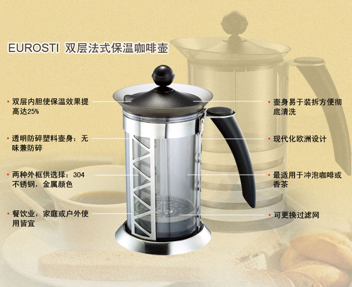 双层法式保温咖啡壶
