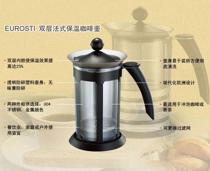 双层法式保温咖啡壶