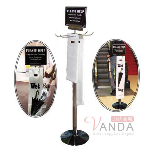 经济实惠,操作简便,用手拽下伞袋,顺着方向插入即可包装好,并可拎着伞袋,以便携带。长伞、短伞及三折伞均适用。美观实用,架体广告牌上面可设计文宣、广告,雨伞袋可印刷广告,整体小巧,适合摆放在各类公共场所。